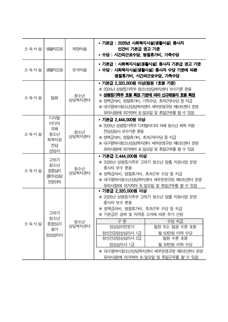 - 근무지: 대구광역시 (공사 본사 및 각 호선별 사업소)