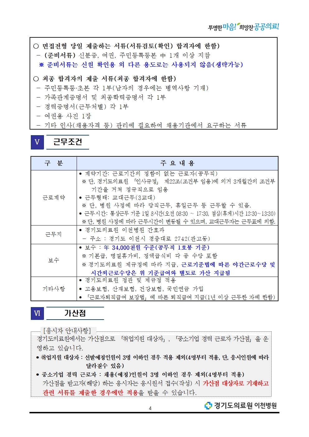 - 접수 방법: 경기도의료원 통합 채용 시스템 온라인 접수