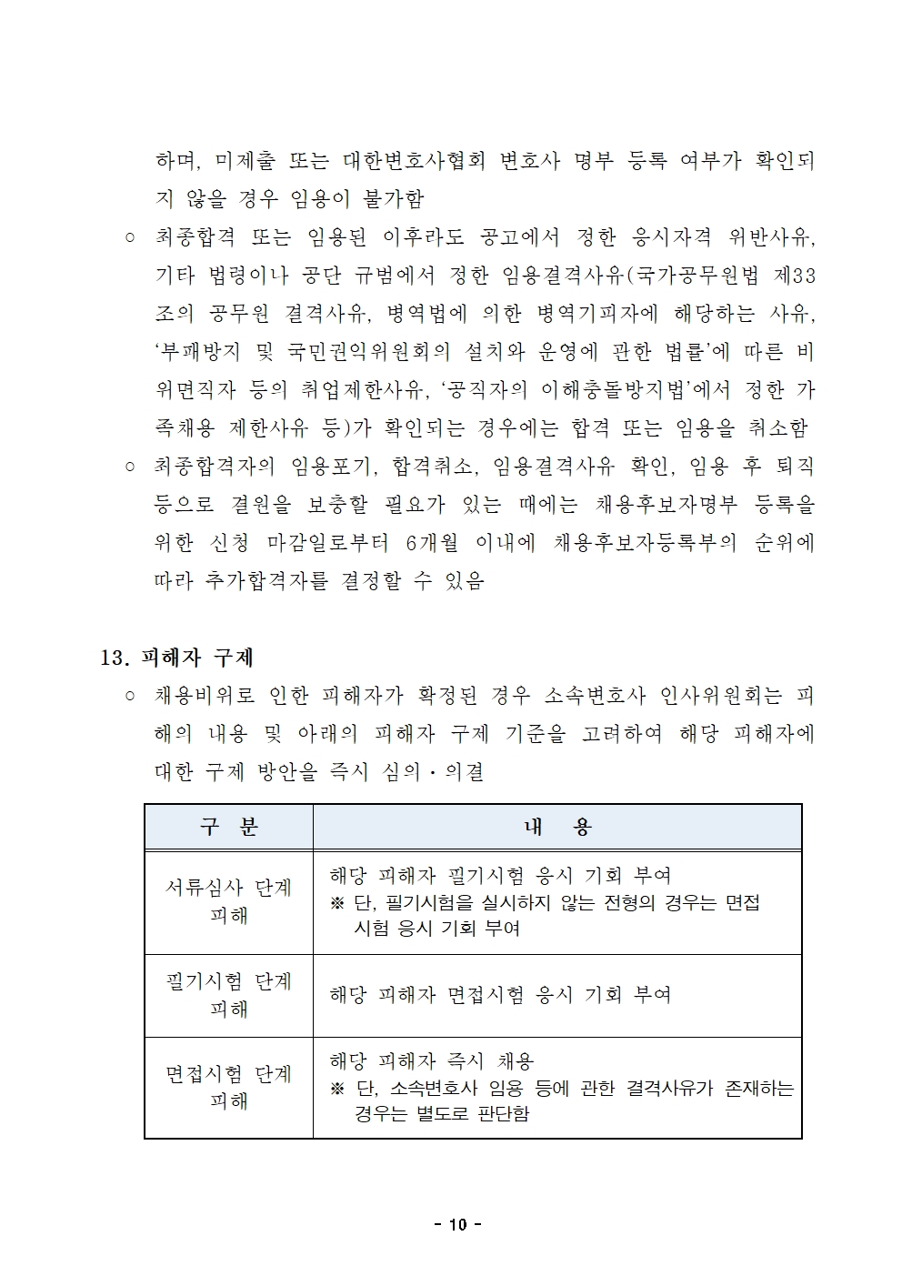 ※ 동점자의 경우, 취업지원대상자 → 서류심사 고득점자(가산점 등 적용) → 변호사시험(사법연수원) 성적 고득점자 → 소속변호사 인사위원회 결정 순으로 합격자 결정