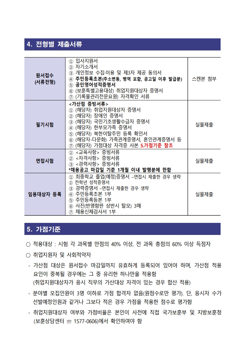 - 우대 사항: 국가유공자, 장애인, 직무 관련 자격증 소지자