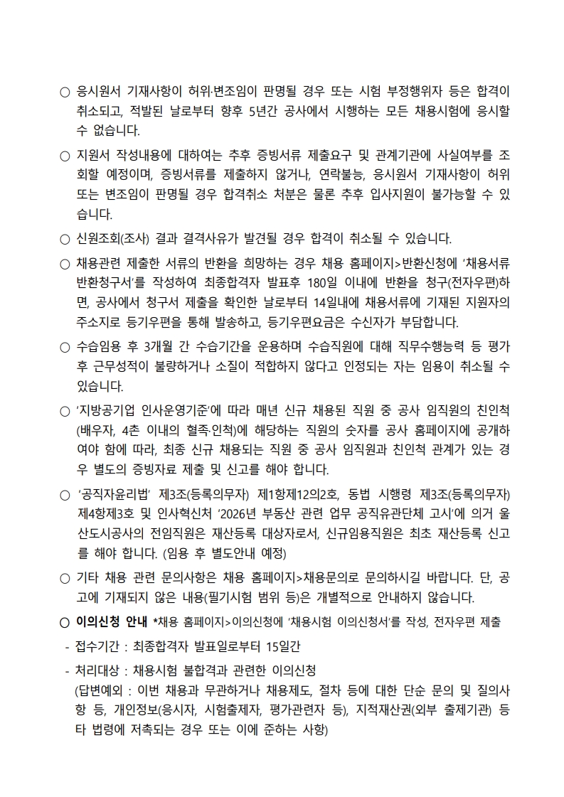 - 지역 제한: 울산광역시 * 제한 사유: 지역 인재 채용 (주소지 제한 요건을 공고문에서 반드시 확인하세요.)