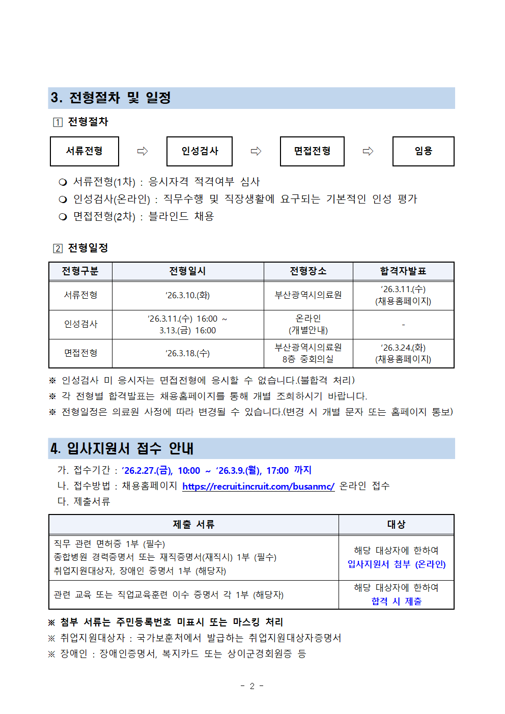 - 접수 방법: 부산의료원 채용 홈페이지 온라인 접수